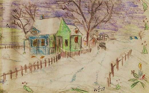 "Ja, ziet U, ik heb ook mijn huisje nu versierd. De grot van de gekregen spulletjes van U is heel erg mooi geworden. De kerstboom die ik gekapt heb in het bos is ook erg mooi.