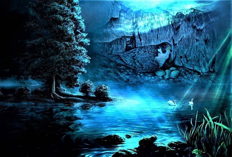 De aanblik van deze nieuwe nestplaats deed deze mooie grote valk jubelen van vreugde.