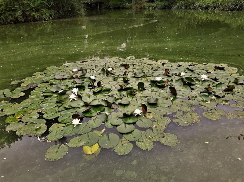 De waterlelies op het bekende plekje in de kleine waterpartij.