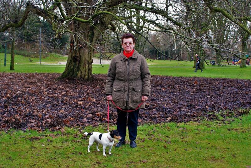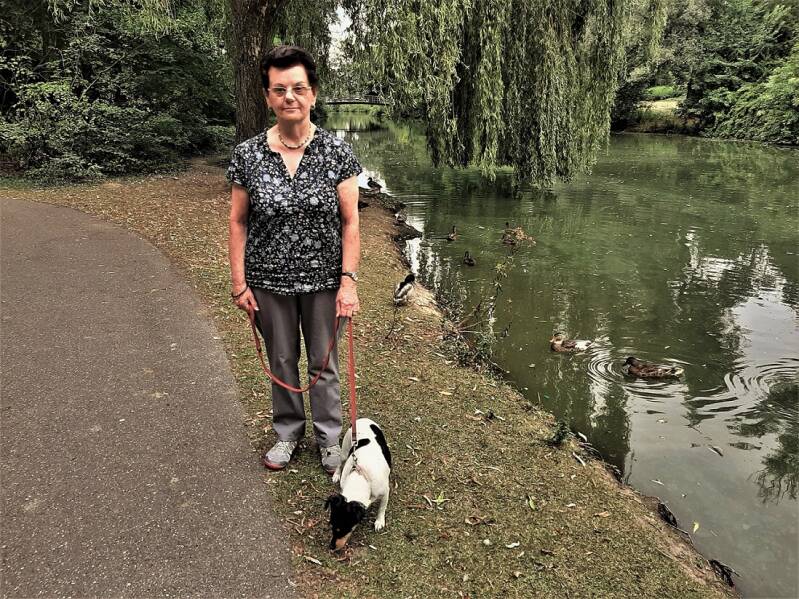 En hondenmeisje Luna wandelde vrolijk met ons mee.