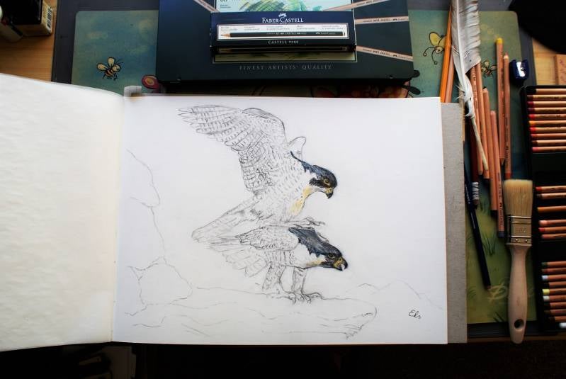Weer met veel liefde voor deze roofvogel getekend!