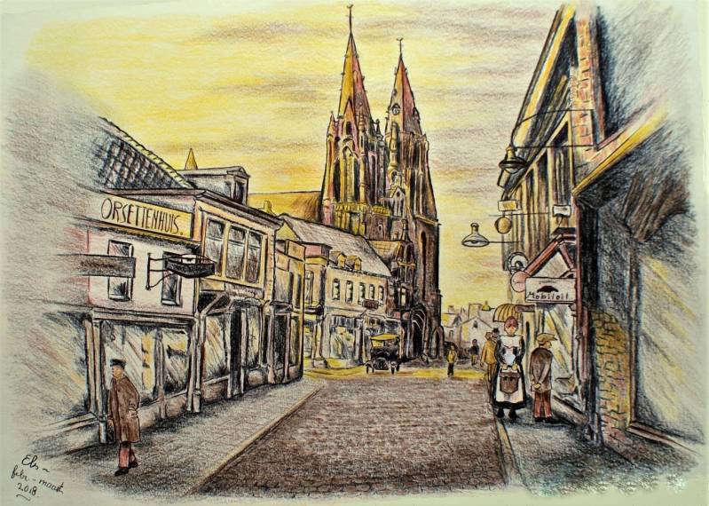 Stratumseind met zicht op St. Catharinakerk in het hart van de stad Eindhoven in het begin van de vorige eeuw.