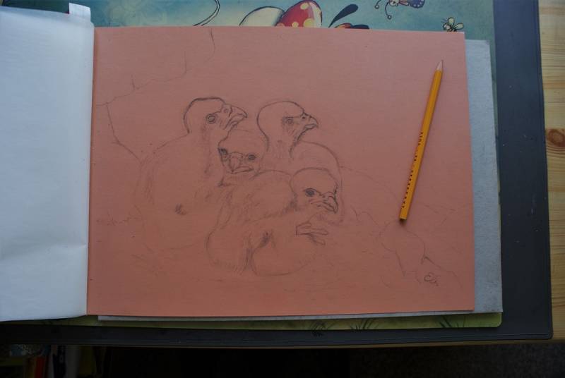 Slechtvalktekening in pastel,