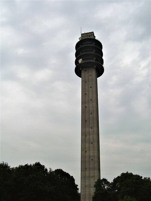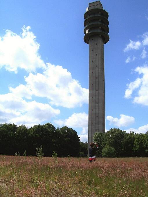 Vanmiddag ben ik samen met mijn man van half 3 tot 6 uur bij de Gemerttoren geweest. Allereerst zijn we rondom de toren gewandeld, zodat we er heel dichtbij waren. Wat een hoog en imposant object. Hij is zodanig in het landschap geprojecteerd dat hij niet echt storend is.