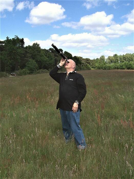 Ik in het open veld. Ik zie de valken.