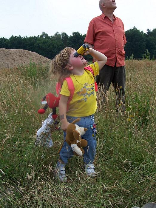Vanmiddag ben ik weer bij de Gemerttoren geweest. Dat was van half 2 tot circa 10 voor half vier. Ik was niet alleen. Ik was er samen met mijn man, mijn dochter en ons kleinkind, ons familiebloempje Margrietje! Maar ook al is "ikke" nog zo klein,'" ikke" kan al echt vogeltjes spotten in het "beroem- de" veld bij de toren, want "ikke" ben al drie !