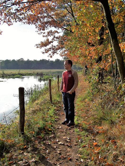 Langs het dammetje van de Snelle Loop. Ik met Maurice.