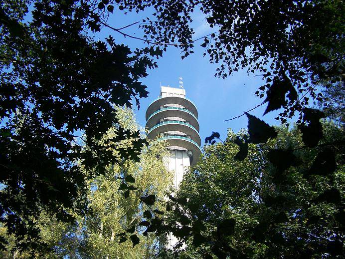 Boven de boombladeren heen liet de Toren ons nog net zien blakend in de zon.