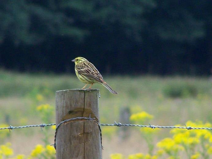 Een geelgorsje maakte zijn opwachting op een der paaltjes van de spottersplaats.