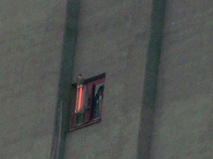Er streek een valk op de grootste antenne neer. Een ander cirkelde er om heen. De valk in het venster zat er nog steeds. Via de ingezoomde lens zag ik dat het weleens een jong kon zijn.