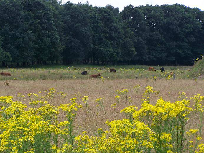 Dat leverde nog een enkel herfstplaatje op en een blik op ook onze geliefde Schotse hooglanders die achter de Toren genoeglijk in het gras aan het happen waren.
