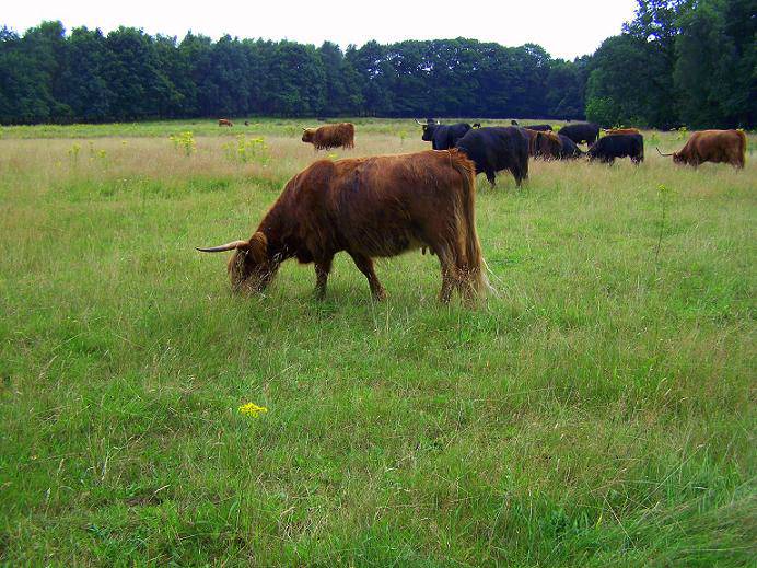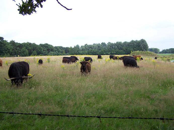 Op het veld langs de spottersplaats af liepen de Schotse hooglanders weer loeiend genoeglijk te grazen.