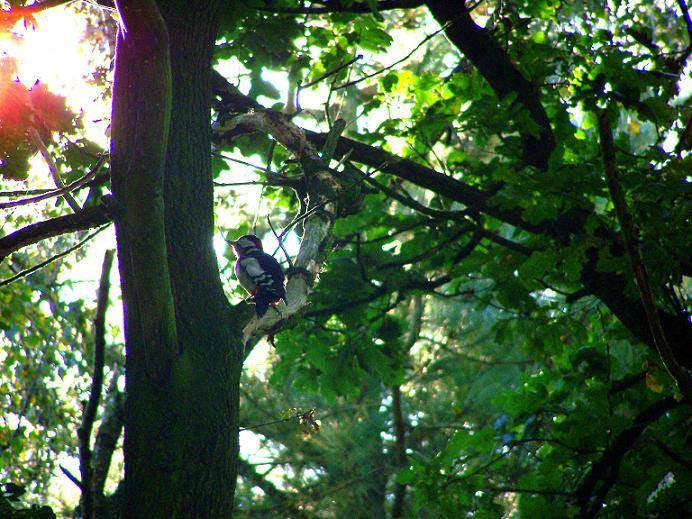 In de bossen gekomen hoorde je het geklop tegen de bomen van de specht.
