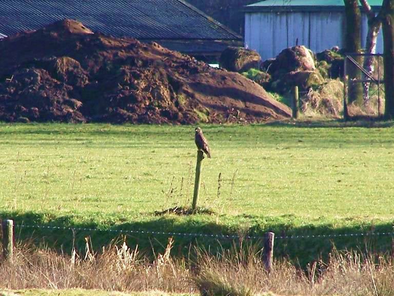 Mieke kwam ons ook gezellig gezelschap houden. Zij kreeg een buizerd in het vizier op een van de buizerdpaaltjes nabij de Snelle Loop.