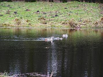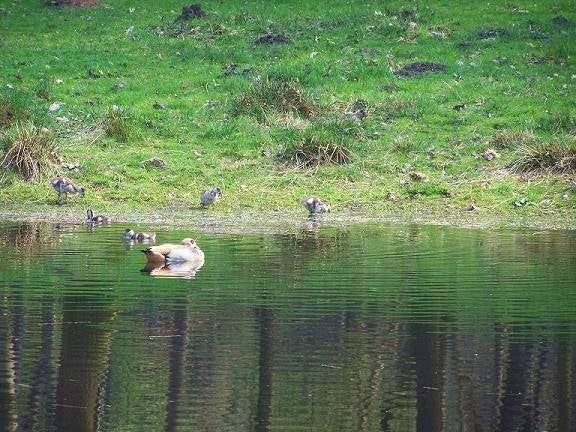 Het koppeltje nijlgansen voelde zich ietwat weggejaagd nu hun plekje bezet werd door de schaatsende tweebeners.
