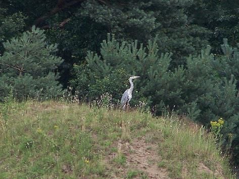Ik liep terug naar mijn klapstoeltje, waar we ogenblikkelijk op de zwaluw-heuvel geen zwaluw maar een reiger heel stilletjes zagen staan.