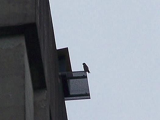 Er streek er weer eentje op de antenne neer. De andere verdween uit ons gezichtsveld. Wie weet koos deze de achterzijde van de Toren.