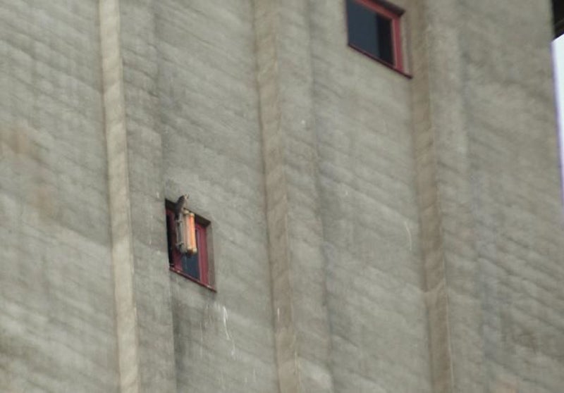 Er was een oudervalk op de grootste antenne gedoken op het dak van de Toren.