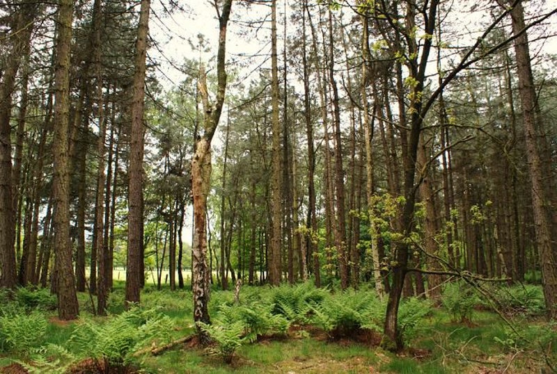 Een deel van het landgoed langs het verharde deel van de Hemelsbleekweg met een varens-deken.