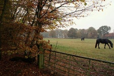 De paardenwei was leeg. De paarden stonden schijnbaar op stal.