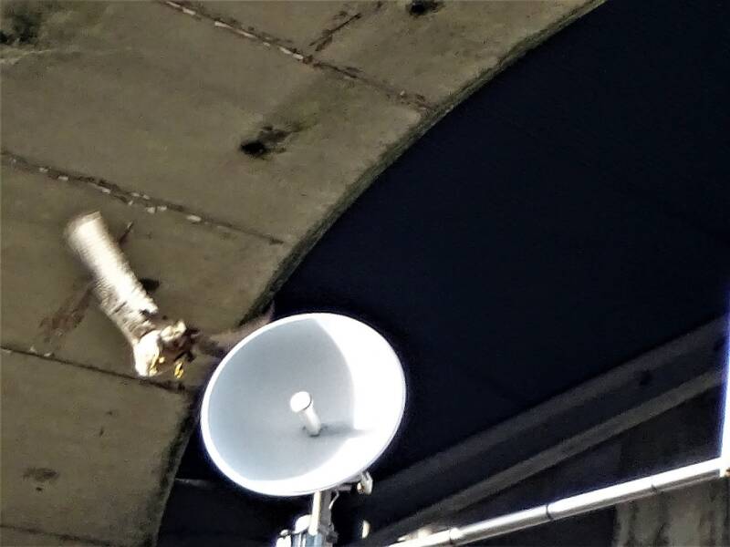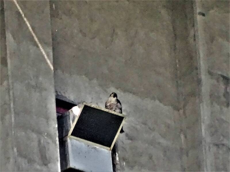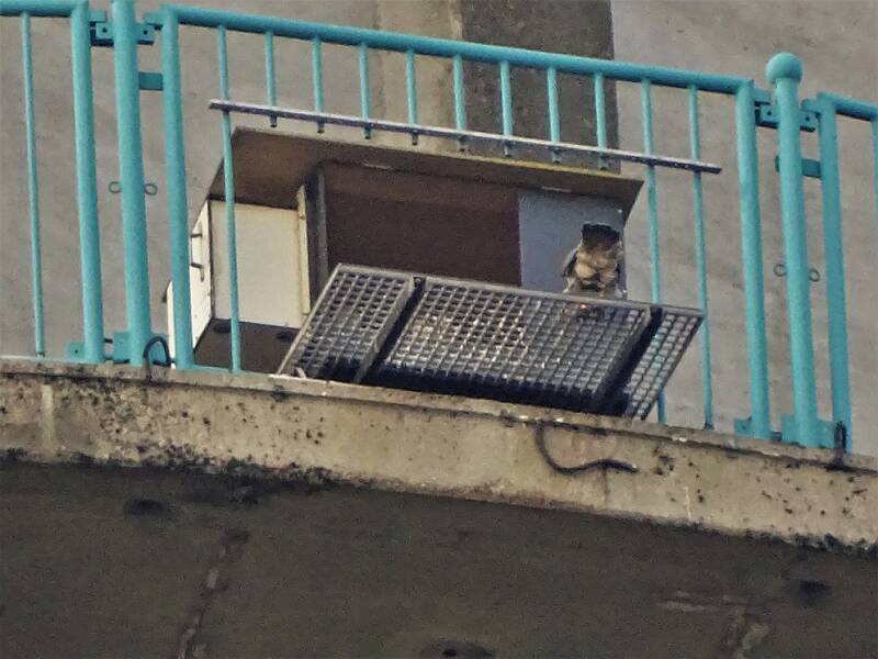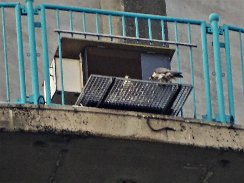 Het gekwetter van de valk weerklonk weer. Hij/zij dook het nestrooster op. Pal daarop als een speer vloog de andere valk ook het nestrooster op linea recta de nestkast in. Ook die liet kwetterend van zich horen.