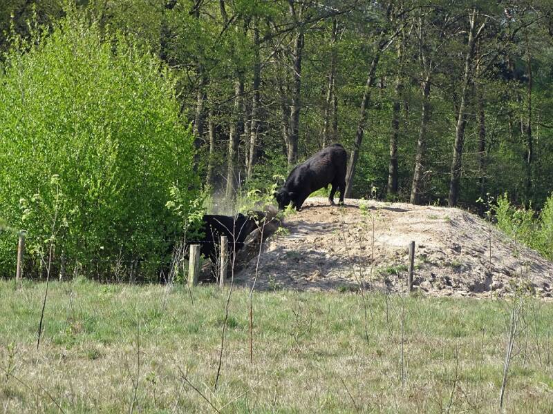Op het veld achter de Toren stonden twee zwarte runderen te grazen. Ze