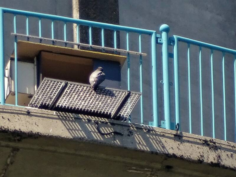 Totdat het opdook. Valkje was op het nestrooster neergestreken.