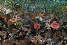 naalden zien. Over de looppaden lag een tapijt van eikenbladeren.