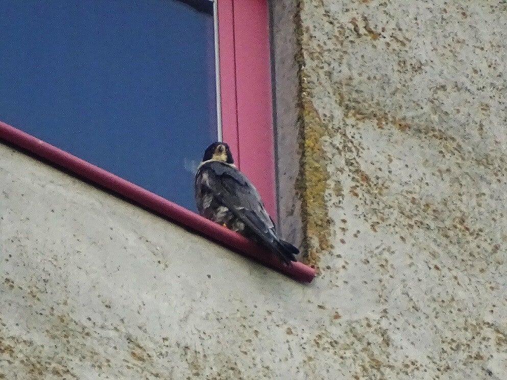 Dinsdag 9 juli 2024 ~ slechtvalk in het raamkozijn aan de achterzijde van de Toren langs het onverharde deel van de Hemelsbleekweg.