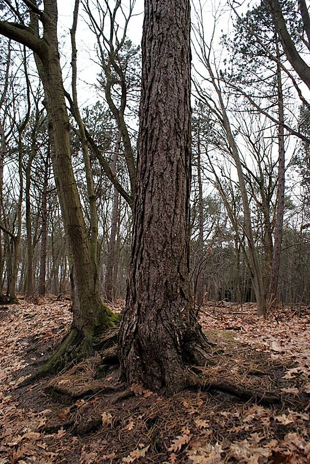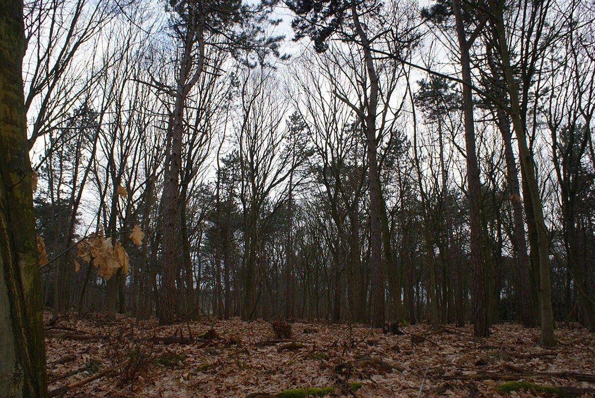 Tussen de verdorde eikenbladeren.