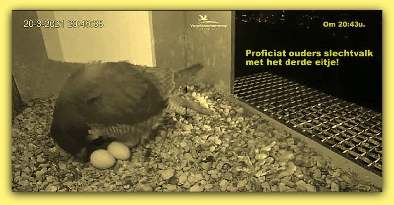 Het vrouwtje bleef bij en vervolgens op de drie eitjes.