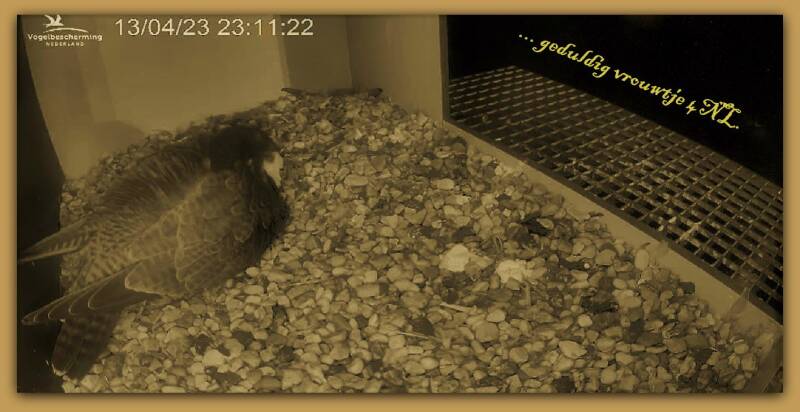 Vrouwtje 4NL is nu erg lang in de nestkast.