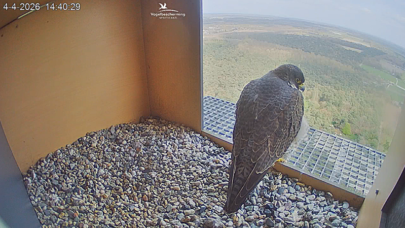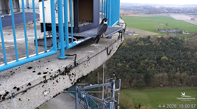 Er wordt een derde -juveniele- slechtvalk waargenomen.